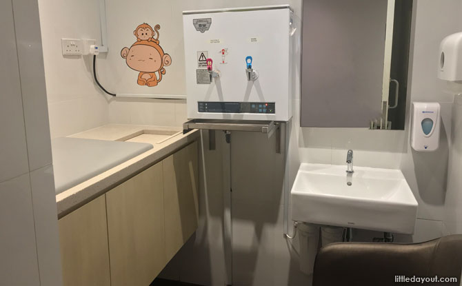 It is also worth noting that the parenting room has higher privacy due to the auto-lock function which the nursing room lacks. Although it may be a little inconvenient not to have all the facilities within one room, this parenting room in the CBD also allows for more than one family to use the parenting facilities simultaneously, especially if they need different facilities.