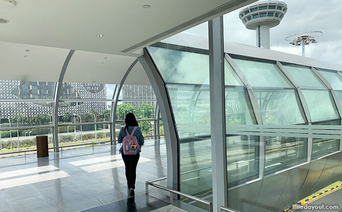 The route above makes use of the Skytrains. As an alternative, we tried an “all-walking” route which makes use of the link bridges through Jewel.