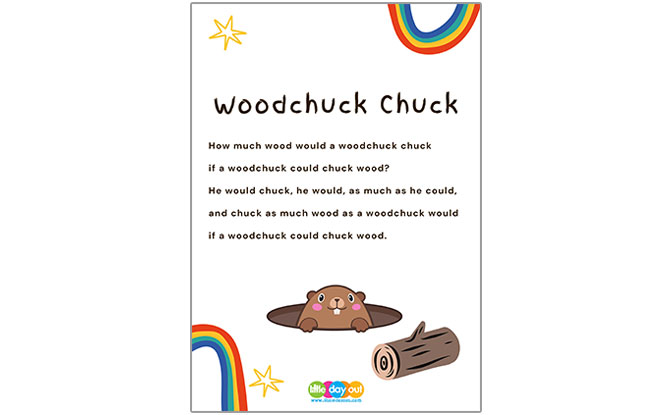 Download a free Woodchuck Chuck’s Tongue Twister Printable here.