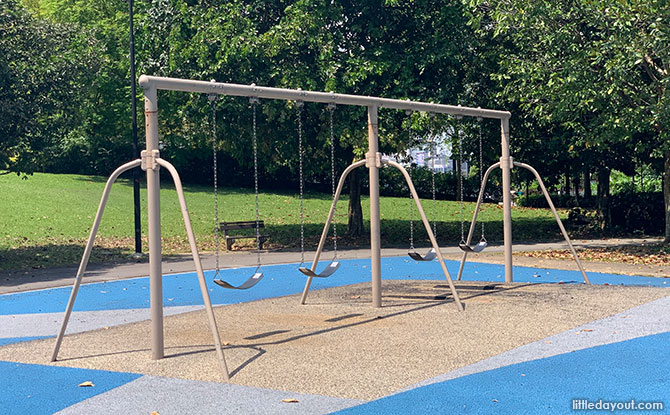 The centrepiece of the playground is the two-storey-high Sky Walk – a series of six crows nets that are interlinked by mesh bridges which people can climb and cross. Suitable for older kids (and adults who dare), adventure seekers are sure to find it quite a treat, especially when it starts getting wobbly up there.