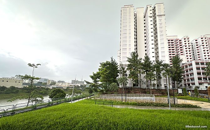 At the very end of the Yew Tee Lifestyle Corridor is the Amphitheatre. This space has been laid out thoughtfully to overlook the Pang Sua Canal with the Pang Sua Park Connector in front of it.