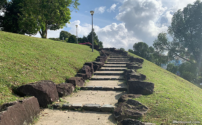 A feature of Yishun Neighbourhood Park is that its summit is an open ground. This makes it a good spot for tossing a frisbee or laying out a picnic mat.