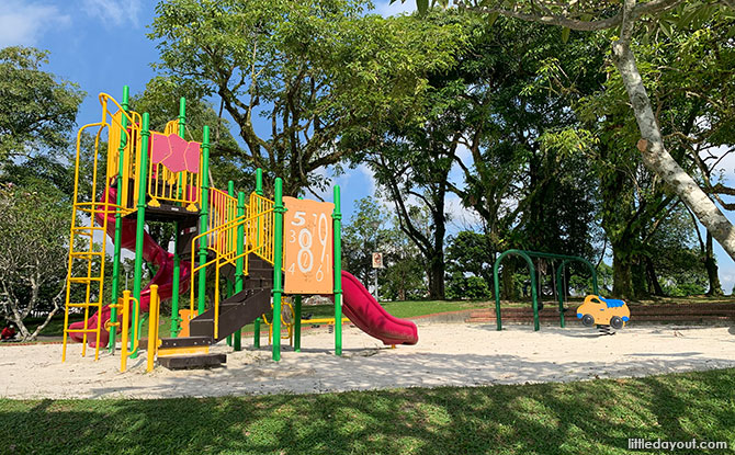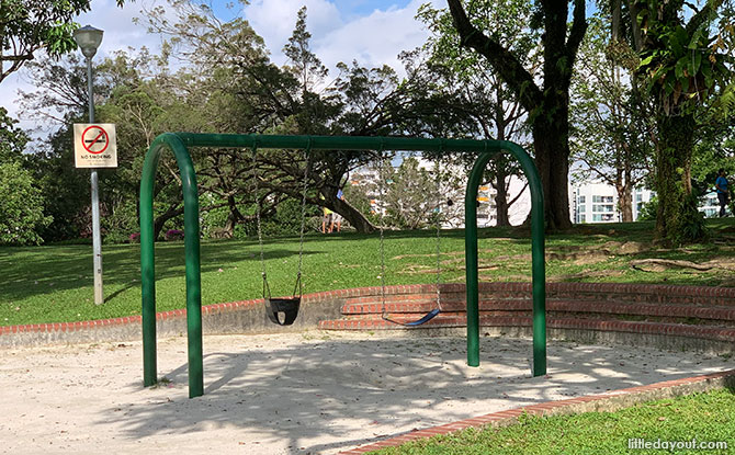 Other play elements at the Yishun Neighbourhood Park playground include a see-saw, teeter-totter and a pair of swings. One of the swings is bucket seat for younger children.