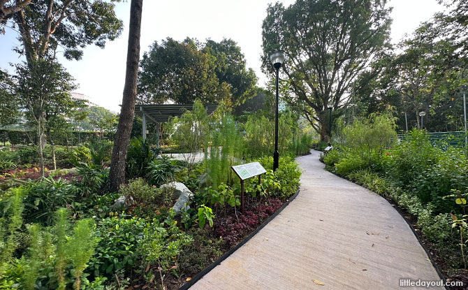 The Yishun Pond Park Therapeutic Garden can be found next to the Nee Soon Sport Centre and offers various elements that encourage visitors to exercise in nature.
