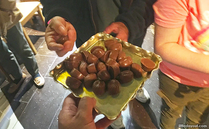 At another spot, we were taught the “proper way” to taste chocolate, just like a connoisseur. We used all senses – sight, smell, sound and taste – to evaluate a piece of chocolate.