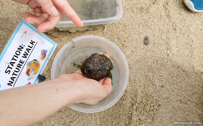 The seekers from Young Nautilus were prepared with their various station setups – plastic boxes with sea creatures or specimens for the young ones to examine. To ensure safe distancing, only one group visits one station at a time.