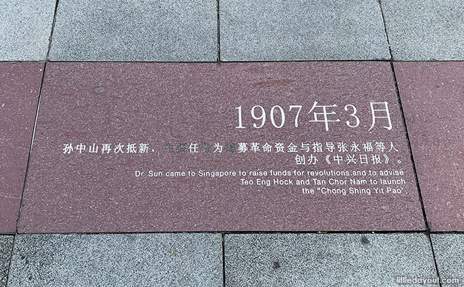 Embedded into the ground, along the walkways at Zhongshan Park, there are various signs which highlight and mark out various important dates relating to Dr Sun Yat Sen.